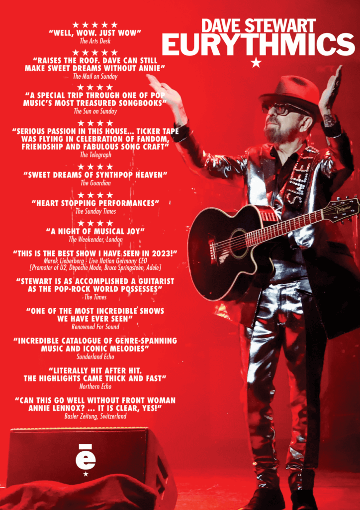 Nach einem hochgelobten Auftritt mit dem Eurythmics Songbook in der Londoner Royal Festival Hall und dem Segen seiner musikalischen Partnerin Annie Lennox, die nicht mehr tourt, hat Stewart sich entschieden, die Show weiterhin live zu präsentieren. Zum Konzert sagte Dave Stewart: